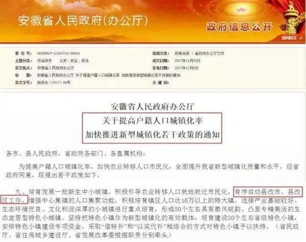 “撤县设市”这个话题之前就在很多阜阳人的朋友圈里,讨论的沸沸扬扬,但是一直没有一个“准信”。别着急,现在有了实质进展,官方发布文件,安徽正式启动县改市、县改区!12月6日,安徽省政府发文《关于提高户籍